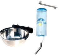 Snuggles Blanket connects to cage by clip, so it's always over the loft. This encourages the puppy to sleep or play on the loft, instead of the pee pad! Stainless Steel Bowl mounts securely to cage, reducing wasted food. Mounted Water Bottle keeps your puppy's cage dry with it's ball tip that resists drips.